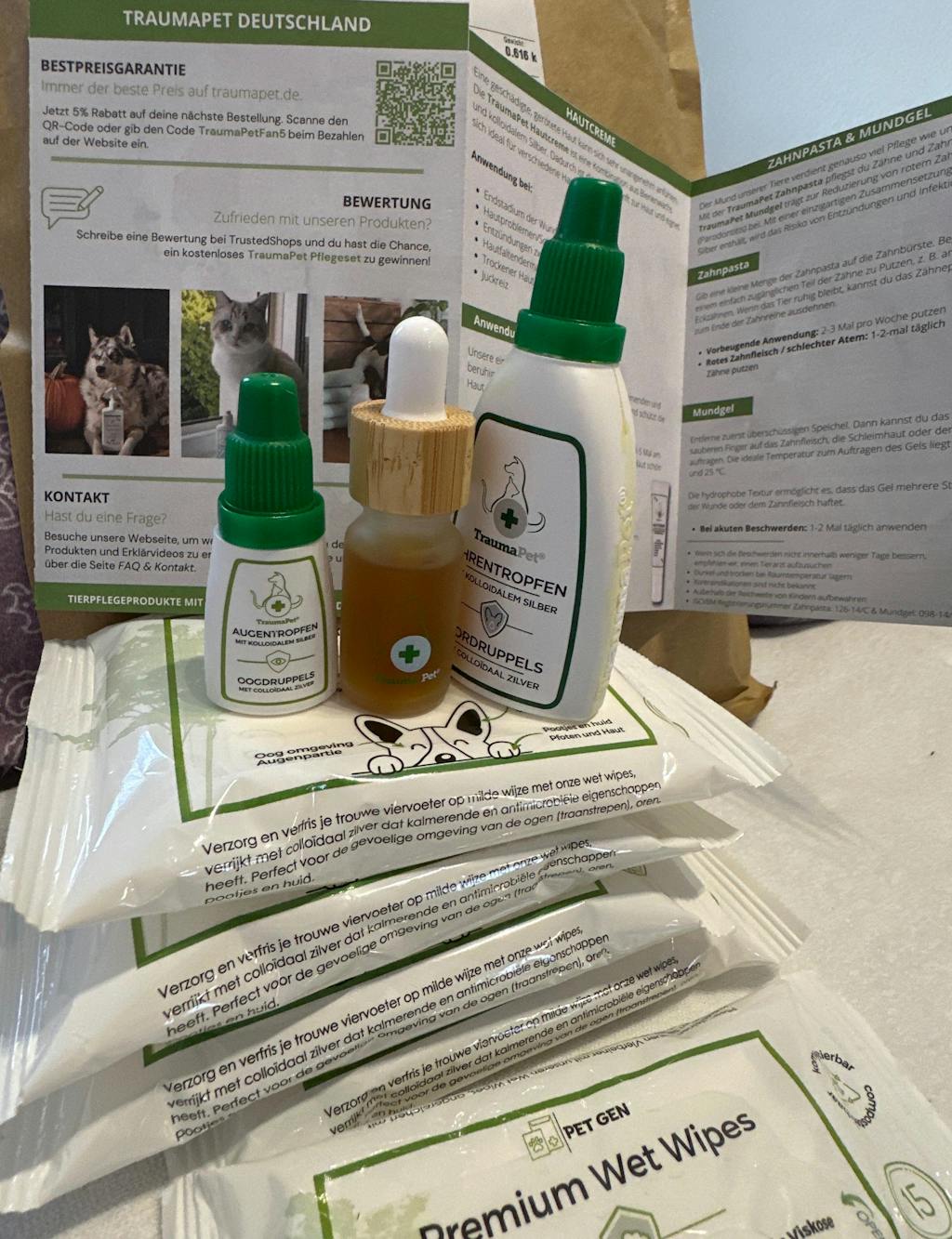 Habe jetzt schon fast alle Produkte von Traumapet. Alle Produkte sind ausnahmslos spitze und sehr wirksam. Helfen in kürzester Zeit, ob Juckreiz, Zahnfleischprobleme, Augenentzündungen usw.. Die Produkte sind zwar nicht so billig, aber sie helfen und deshalb sind sie jeden Cent wert. Bin sehr begeistert. Danke Traumapet Team