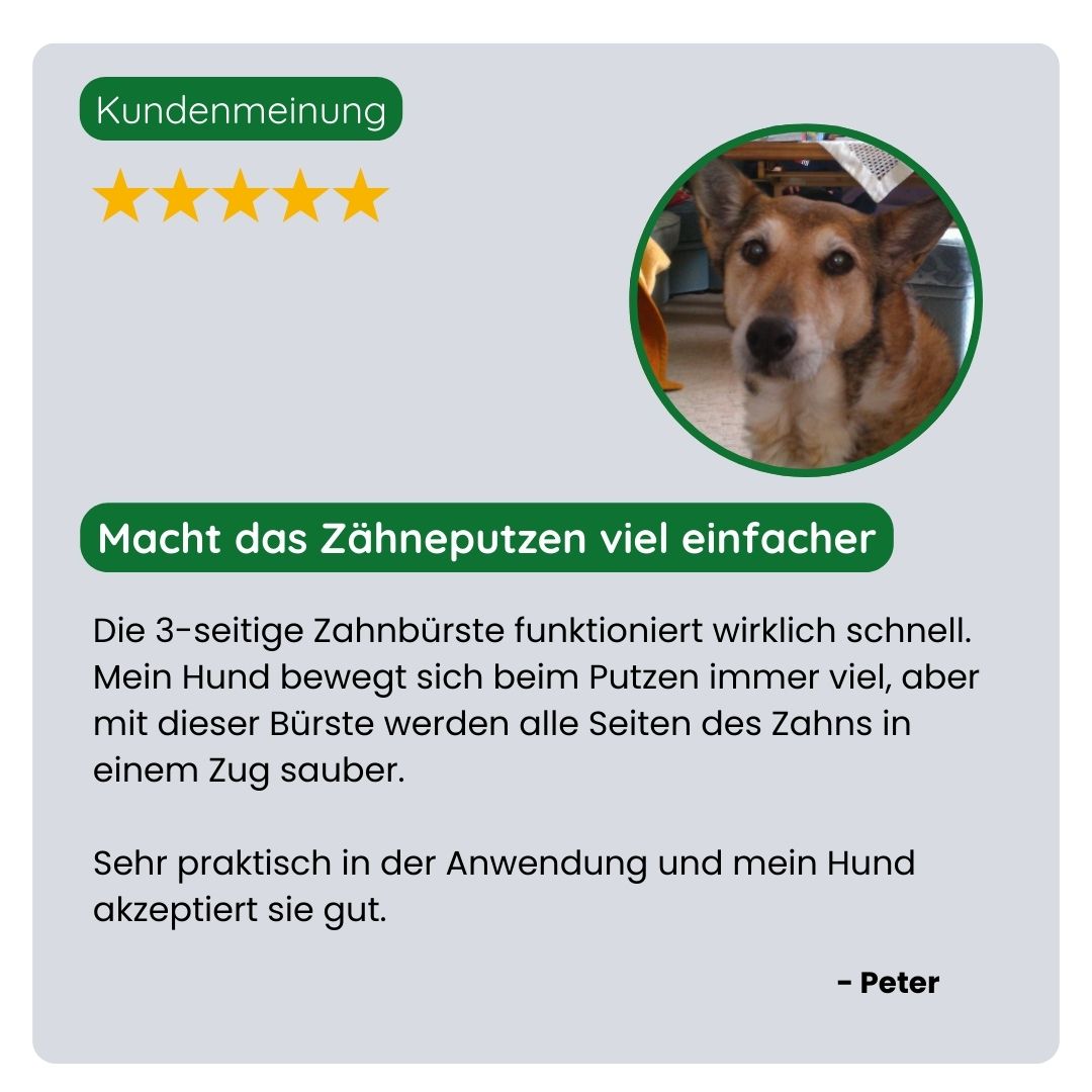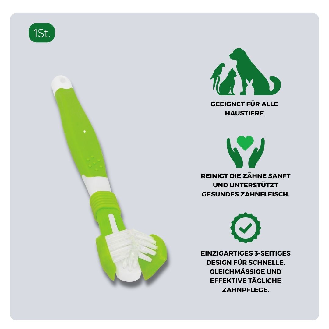3-seitige Zahnbürste für Hund und Katze. Reinigt die Zähne rundum in einer Bewegung für eine schnelle, gründliche und stressarme Mundpflege.