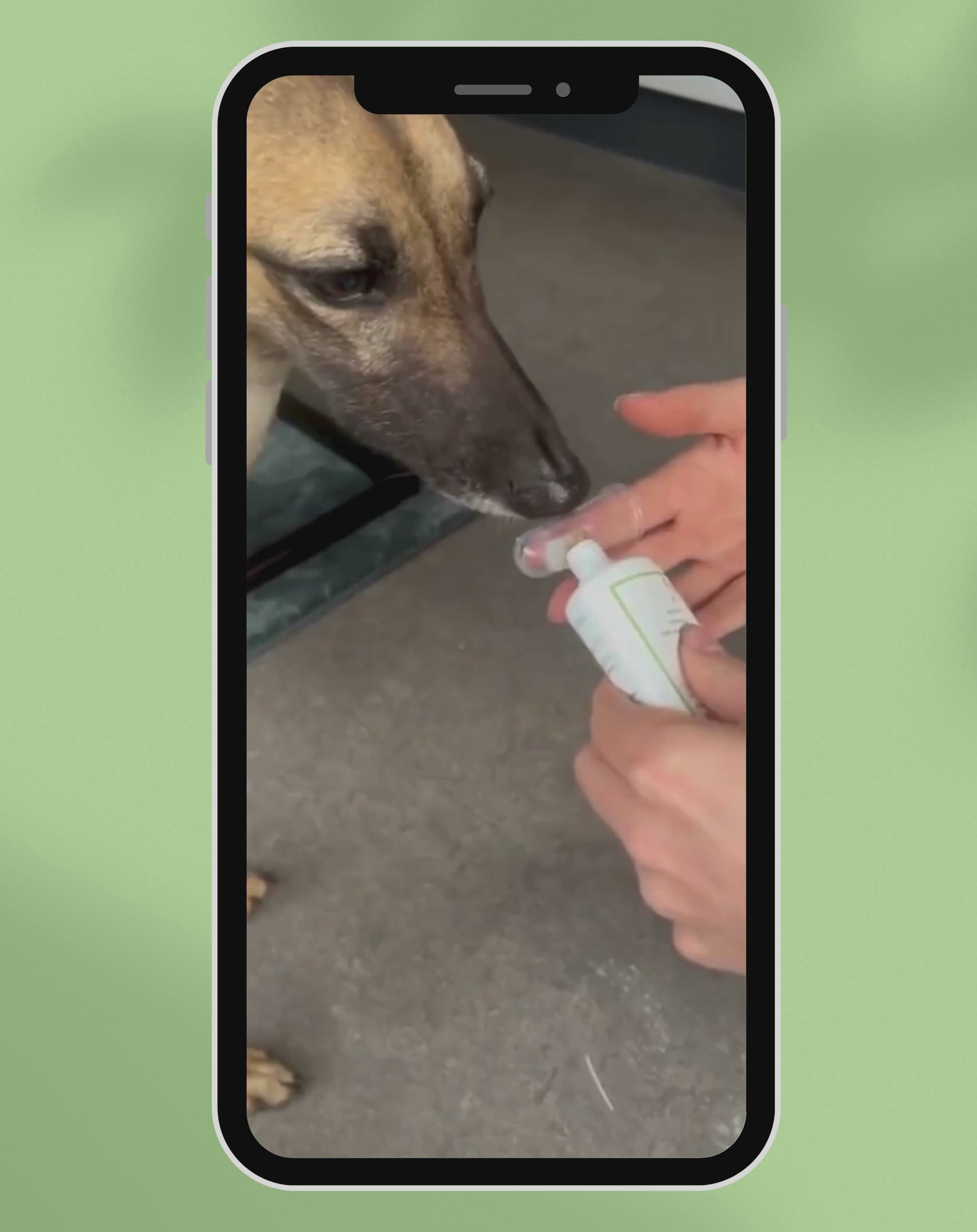Nachdem dein Haustier den Geschmack akzeptiert, trage eine kleine Menge Zahnpasta auf eine Zahnbürste (z.B. unsere Fingerzahnbürste) auf und putze vorsichtig die Zähne in kreisenden Bewegungen. Lobe und belohne dein Haustier während des Prozesses, um positive Assoziationen aufzubauen. Mit Geduld und regelmäßigem Training wird sich dein Haustier allmählich an das Zähneputzen gewöhnen.