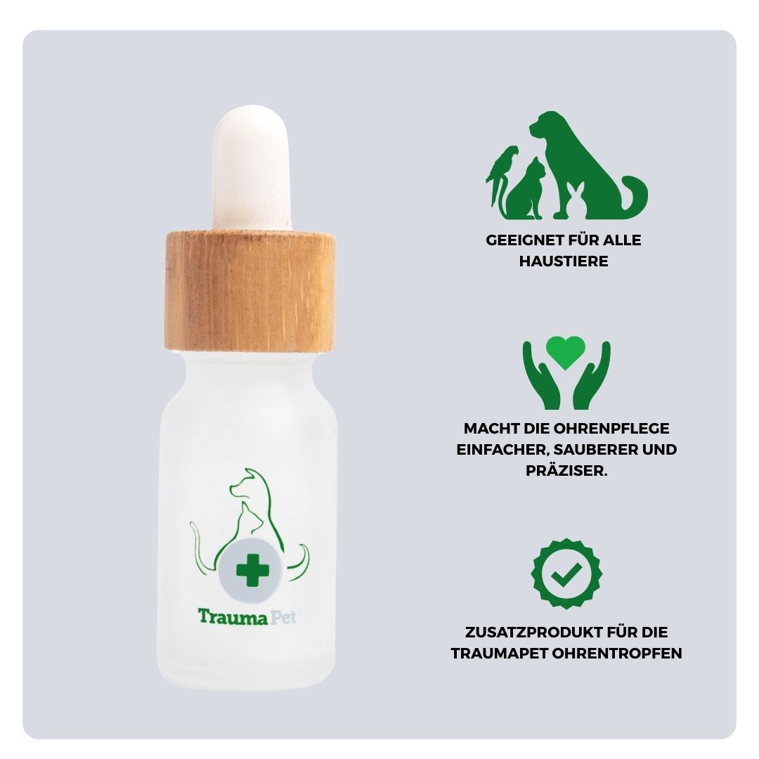 Deshalb haben wir die TraumaPet Pipette entwickelt, ein einfaches und praktisches Hilfsmittel, das das Auftragen von Ohrentropfen für dich und dein Haustier leichter, präziser und angenehmer macht.